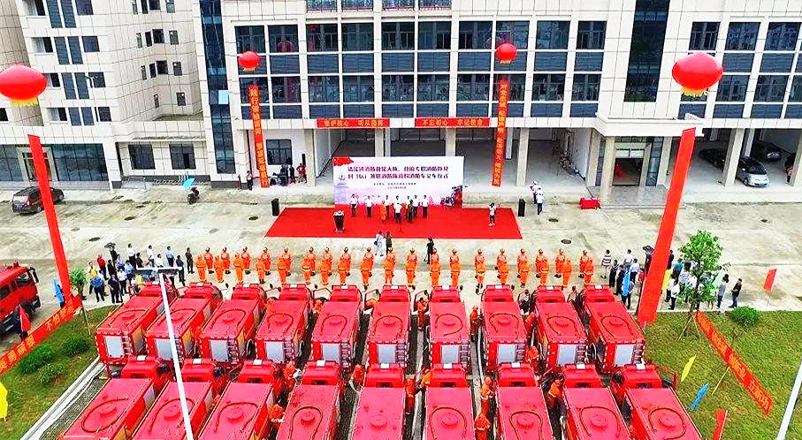 這就是最近福建泉州消防支隊舉辦了一場“全民參與 防治火災”主題宣傳教育活動暨微型消防車交車儀式。上千名市民現(xiàn)場觀看消防設備,學習逃生技巧和防滅火技能。隨后,一場驚險的演習拉開了活動的序幕。假設商場二樓一店面發(fā)生火災。發(fā)現(xiàn)火情后,商場內(nèi)部保安迅速將人員進行疏散,微型消防站隊員展開初期火災撲救。隨后接警的消防隊員也趕到現(xiàn)場,他們有的利用登高車救人,有的則外位架起水槍滅火。