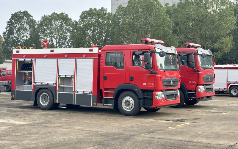 重汽豪沃8噸水罐泡沫消防車:采用國六底盤(ZZ5207TXFV471GF5),搭載MC7.34-60發動機(251Kw),罐體容積為6噸水+2噸泡沫,配備上海CB10/60消防泵和威斯特PL48W消防炮(射程≥60米水/55米泡沫),駕駛室為雙排全金屬封閉式。