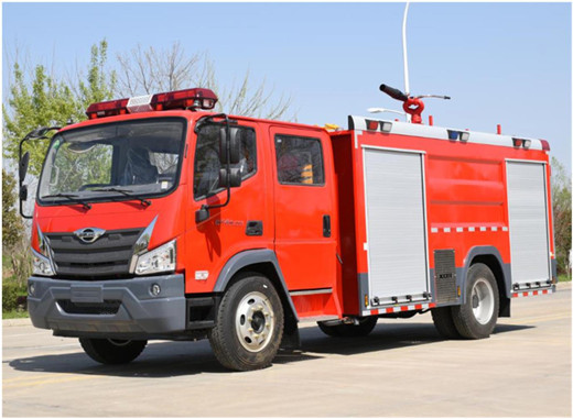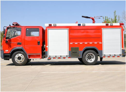 3.車輛兩側上方各配有3個紅藍爆閃燈及 3 個側照明燈,下方安裝安全標志燈和側回復反射器(組合式),配有前、后示廓燈,兩側各一只轉向燈,乘員室、器材箱、泵房內均裝有照明燈,并符合GB4785 規定。