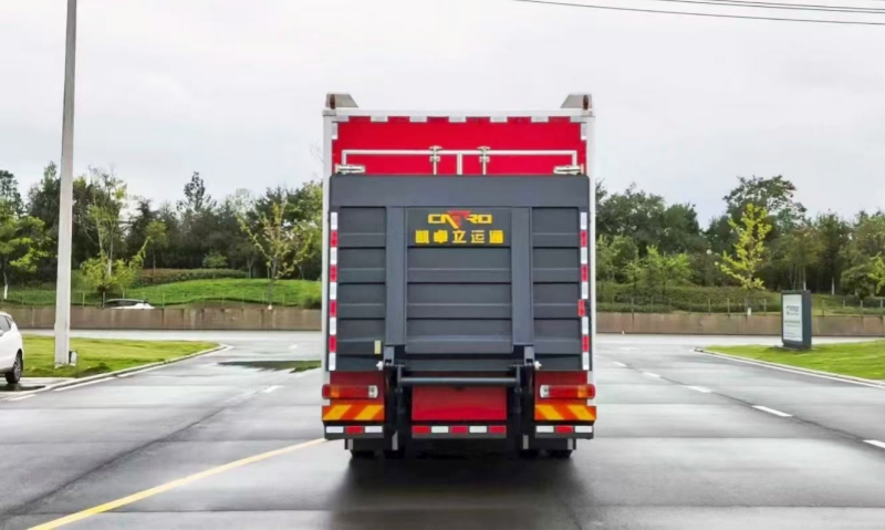 車輛采用標(biāo)準(zhǔn)化拉臂機構(gòu),支持多類型器材箱體快速裝卸。模塊箱內(nèi)部以編織帶和絞繩器固定裝備,確保運輸穩(wěn)固性;箱體容積達8立方米,可容納22類常規(guī)救援設(shè)備,如消防水帶、破拆工具及生命探測儀,實現(xiàn)“一車多能”的靈活部署。